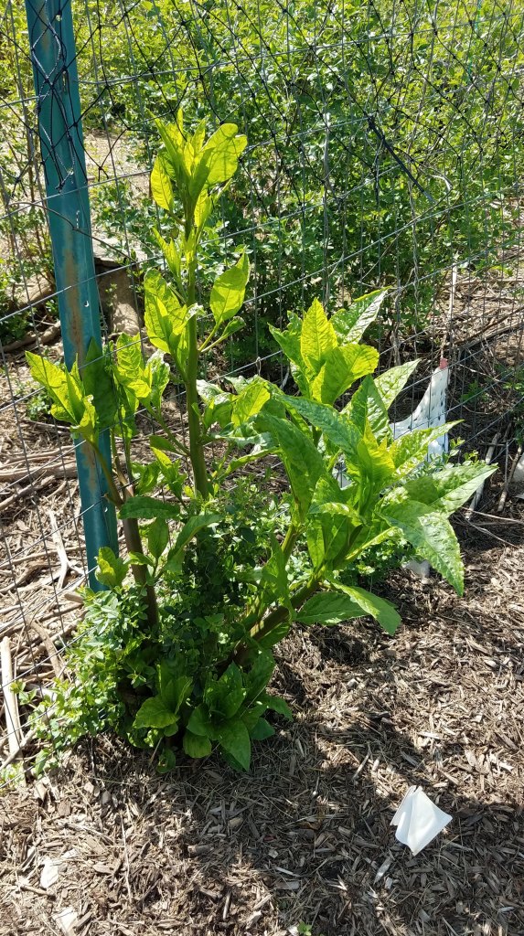 On a brighter note, the pokeweed I cut to the ground a few weeks ago has grown back beautifully. This time it has much less pink in the stems than when it first came up.