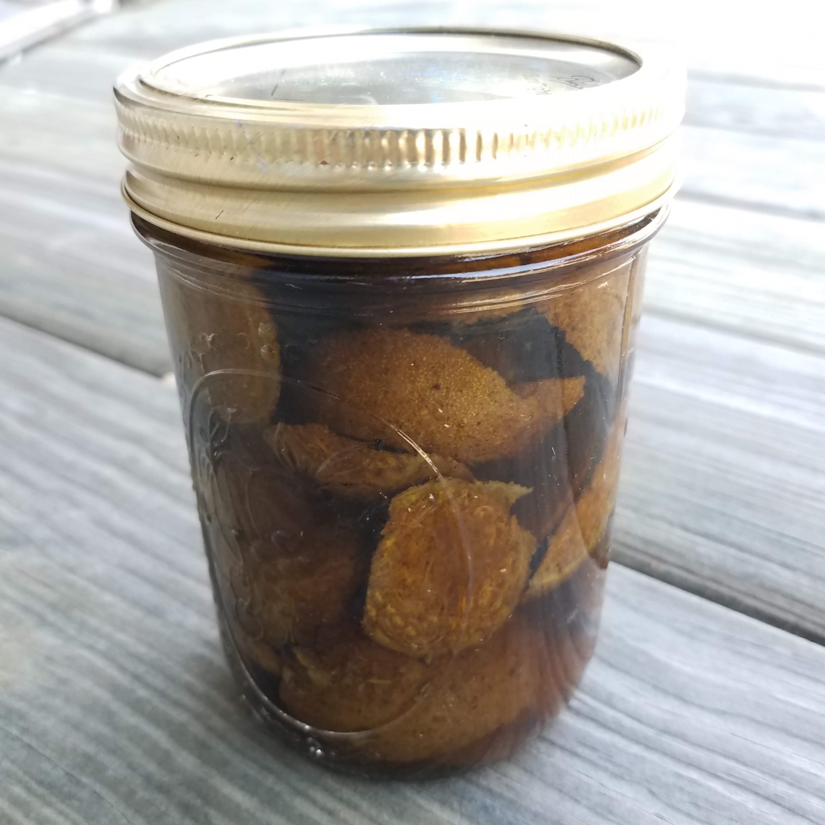Remember to wear gloves when prying off the hulls, preferably something stronger than the vinyl gloves that are so ubiquitous in this day and age. That’s what I used, much to my chagrin. The sharp ridges on the shells ripped through the fingertips of the gloves, and a week later my fingers and nails are still stained brown! Luckily we rarely leave the house these days, so no one noticed or cared that my hands looked diseased.
