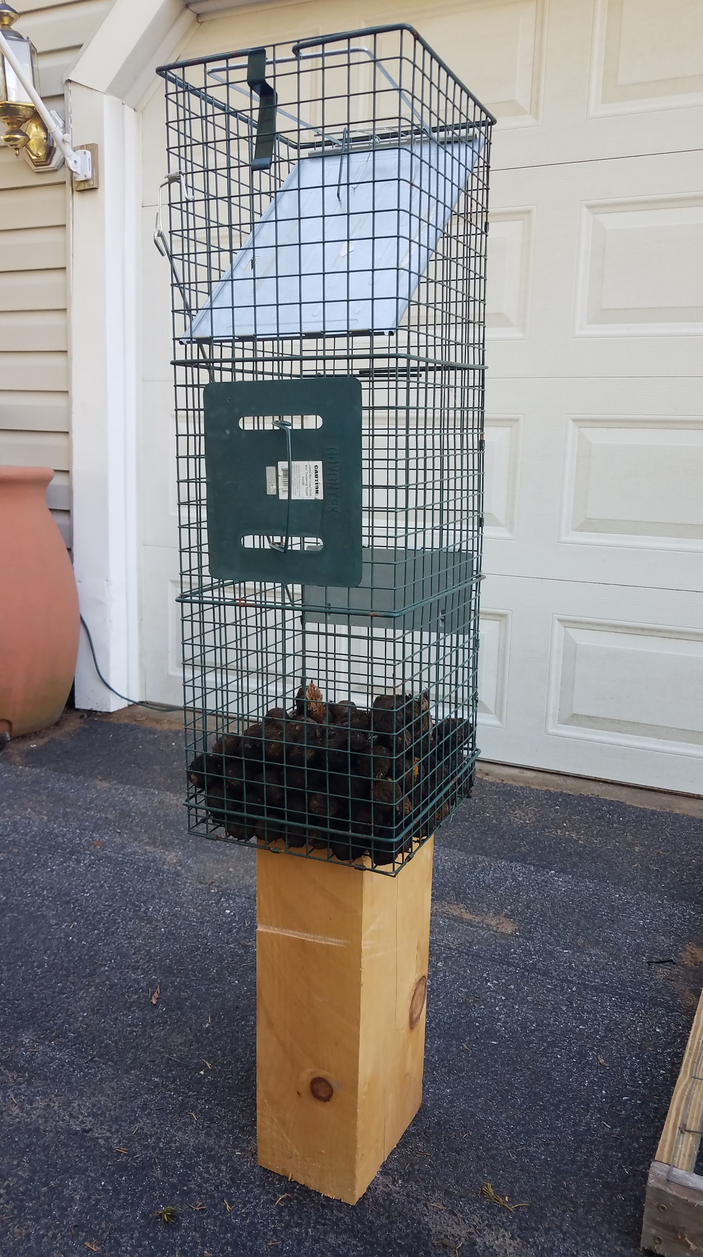 Then the nuts need to dry for several weeks for the nutmeat to pull away from the edges to make it easier to shell. This is the step I forgot last year! Make sure to keep the nuts in a squirrel proof location. Our resident squirrel crept right into our garage to steal the nuts I had spread on a screen to dry! We stepped up our game, dumping the drying nuts into a critter cage which we then propped up on a block of wood to discourage her from gnawing on the walnuts through the wire.