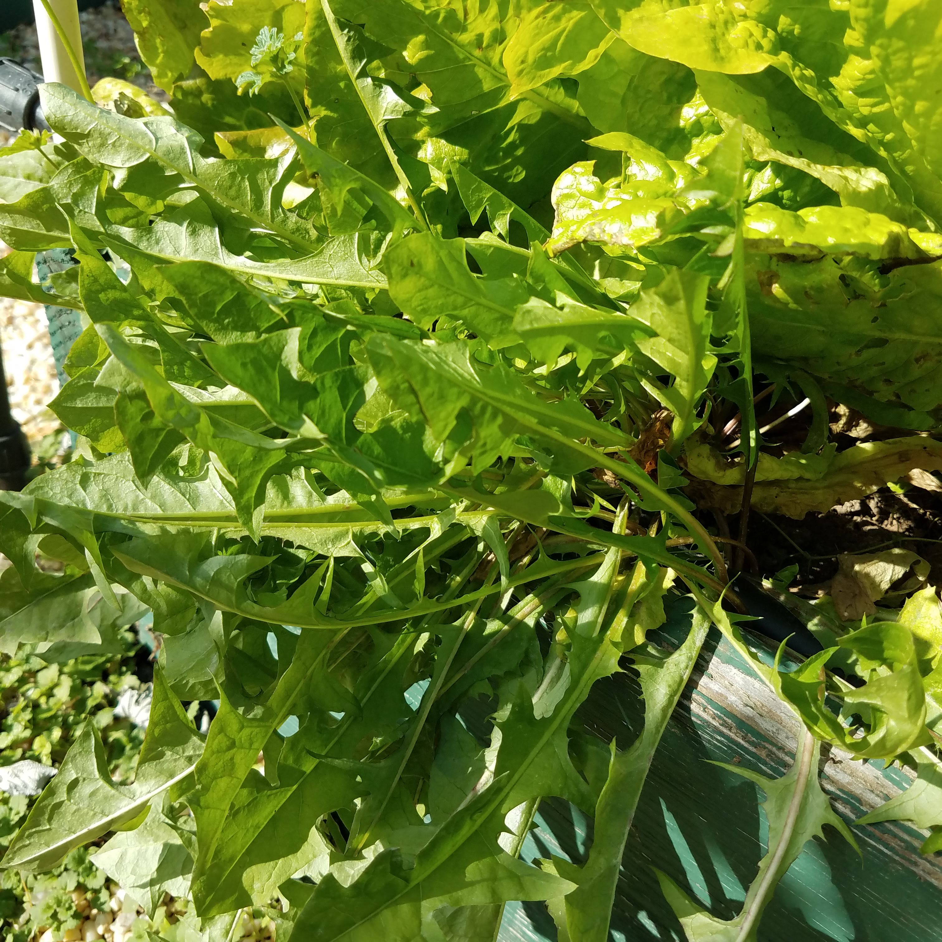Dandelion (Taraxacum officinale) is also popping up in my garden, along walkways and borders, and, well, basically everywhere! Fall dandelions are generally more tender and mildly flavored than ones you might pick in summer, although individual plants may vary greatly due to growing conditions. Like chickweed, dandelions can be a continuous source of greens. If you cut all the leaves off but leave the roots, it will send new leaves out several times.