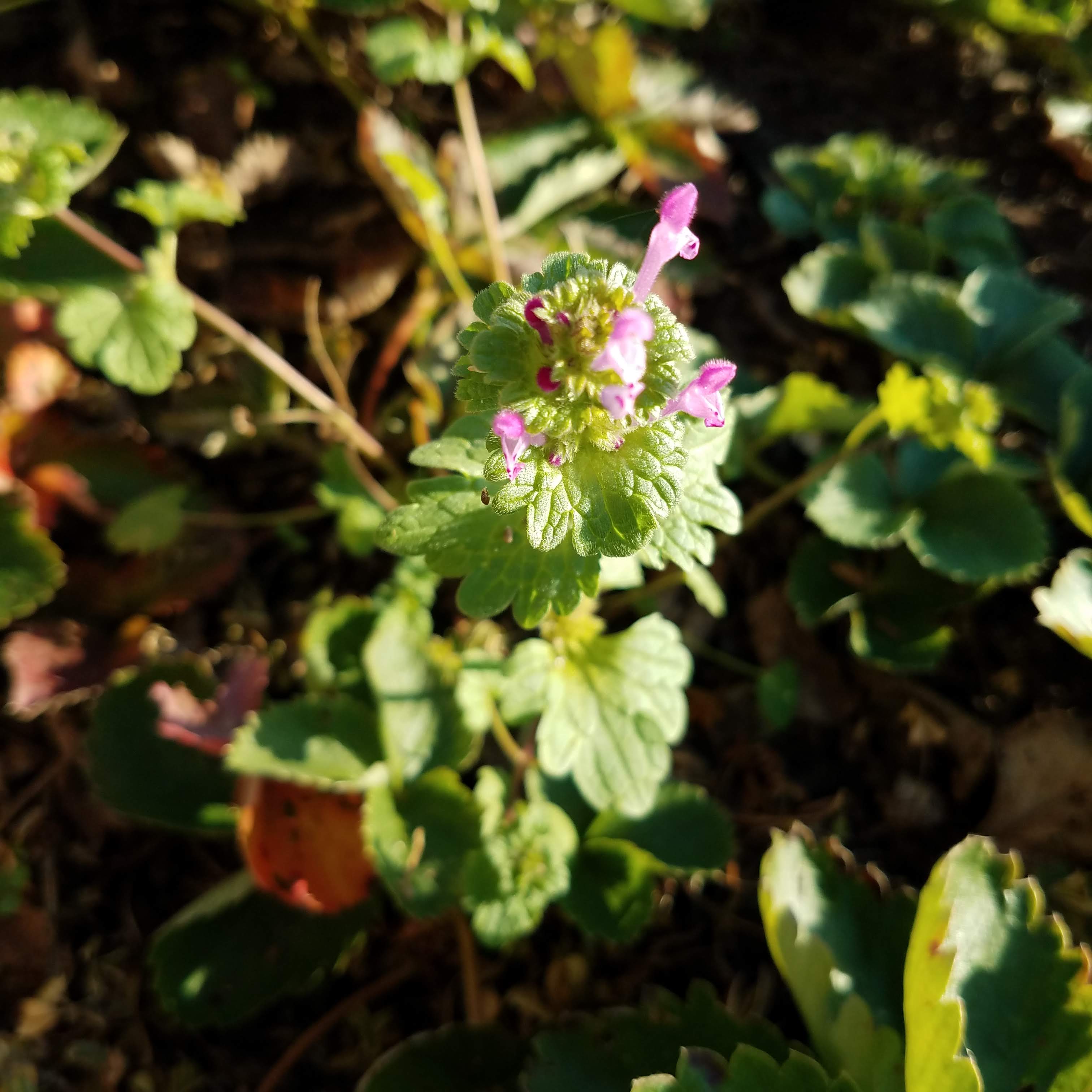 Henbit (Lamium amplexicaule) is also making an appearance with its frilly leaves and dainty flowers.