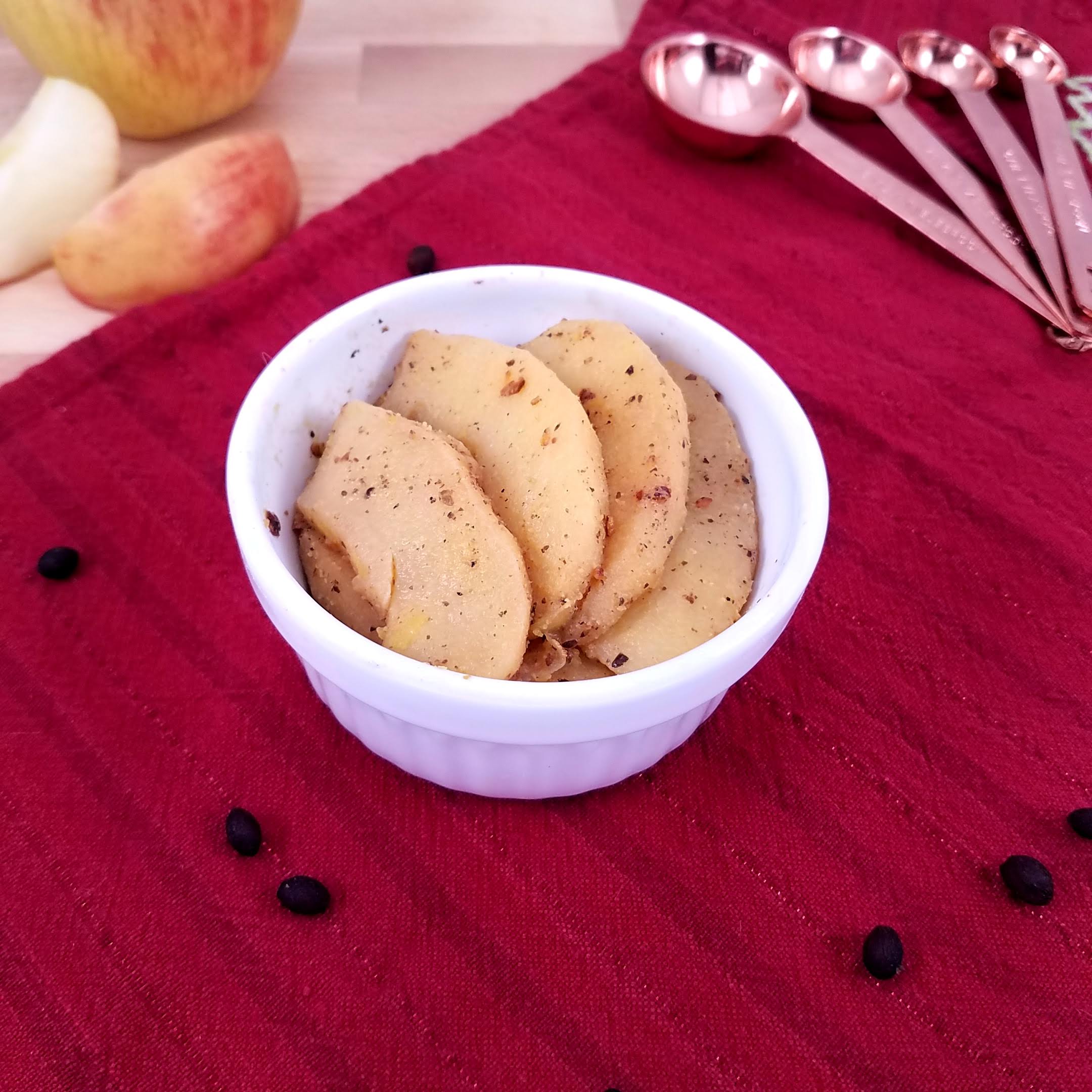 Cut the apple however you like – thin slices, wedges, large chunks or small. The cooking time will vary depending on how large the pieces are, but the process is the same.