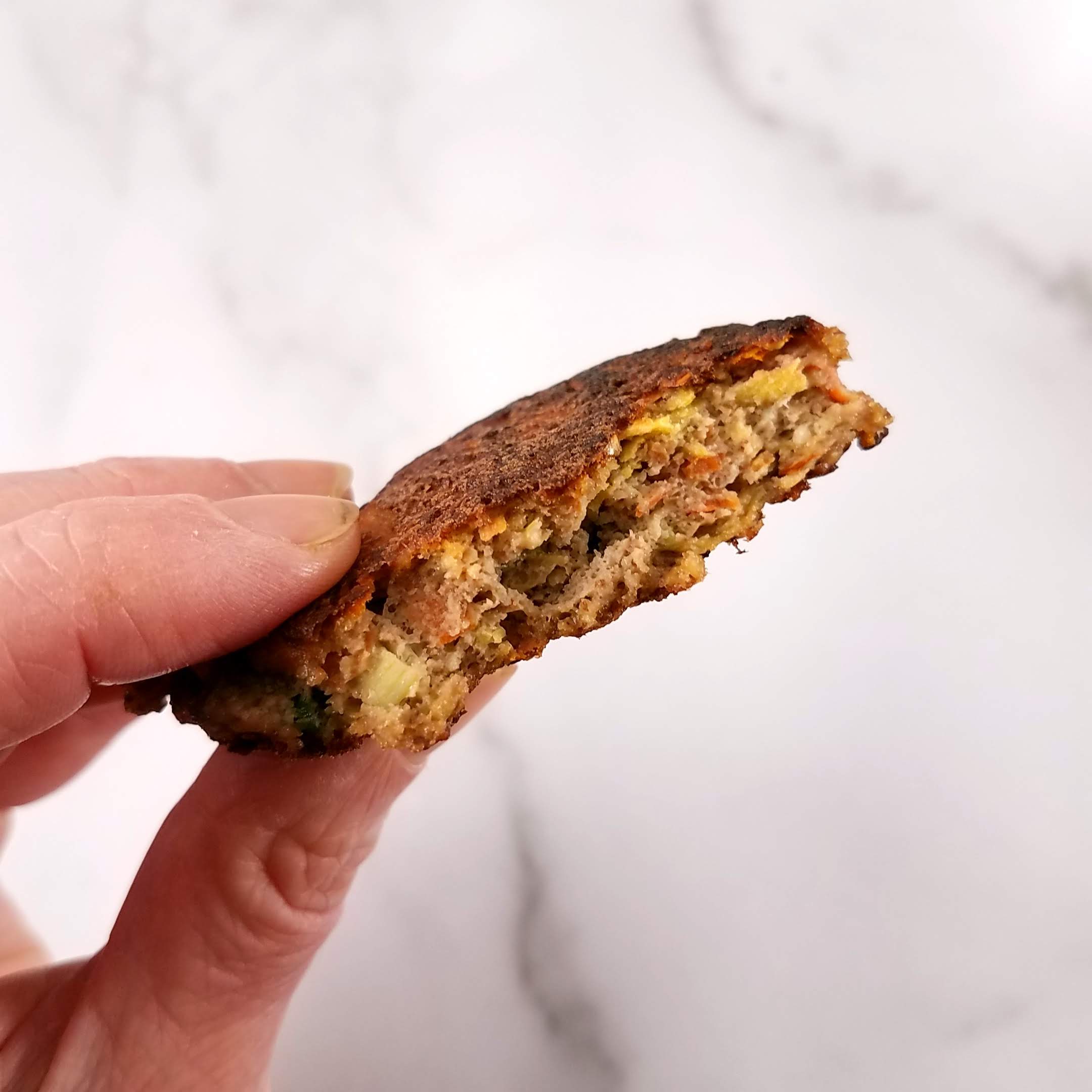 A cross section of  a black walnut veggie fritter because that gave me an excuse to eat half while photographing it