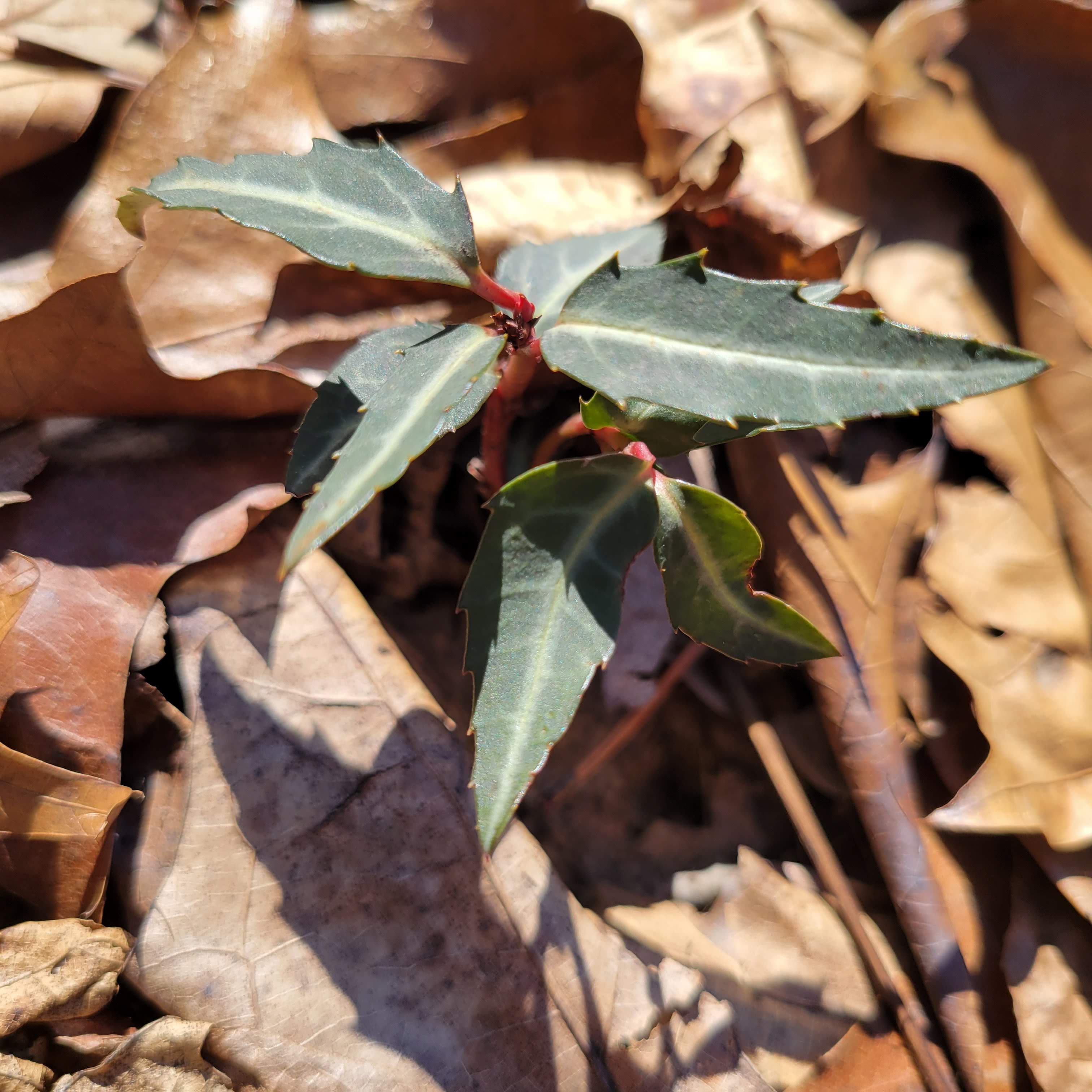 Today, it was spotted wintergreen (Chimaphila maculata), a small unassuming plant that was almost hidden by the dead leaves surrounding it.