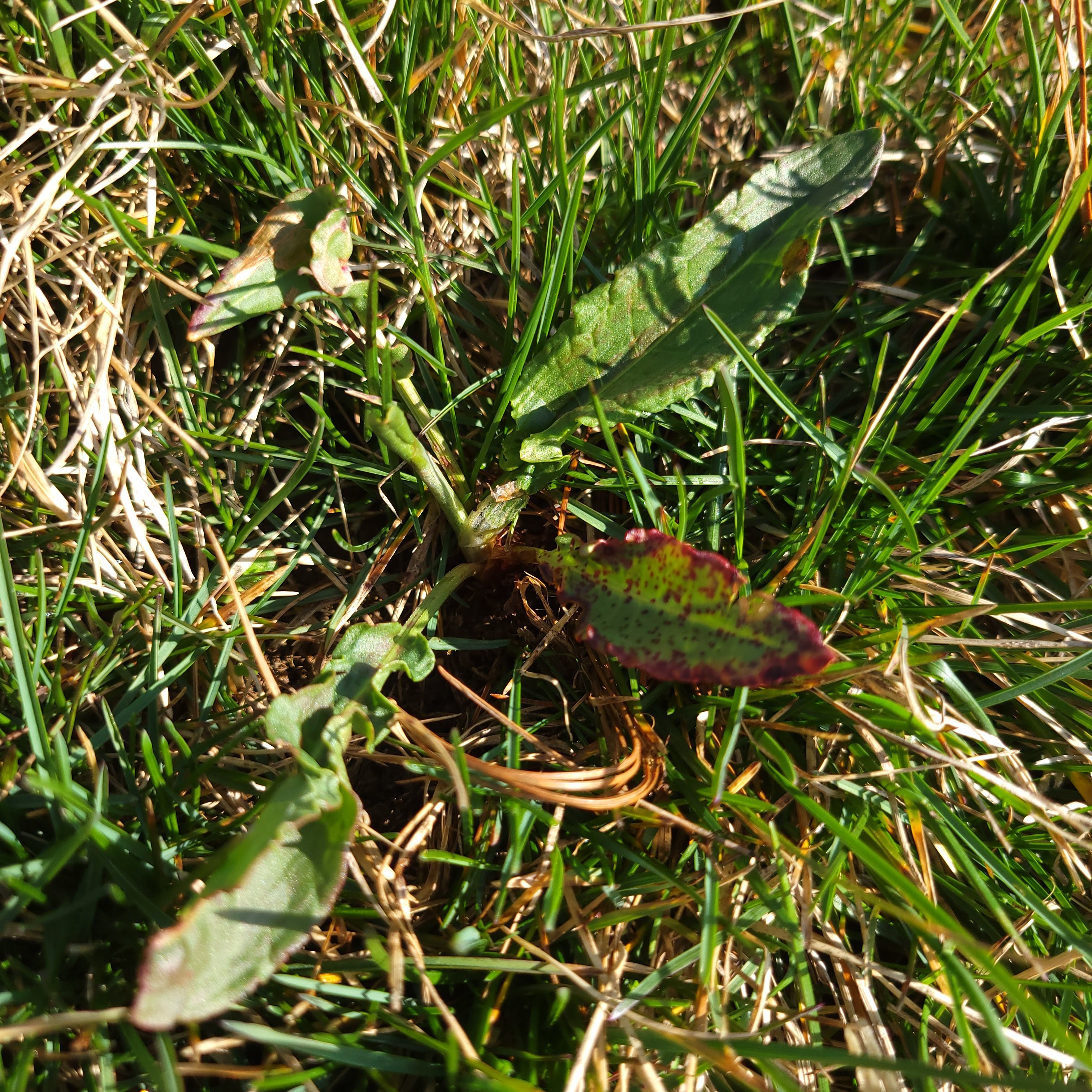 At this early stage, I can’t tell if this little plant is Rumex obtusifolius, broad-leaf or bitter dock, or Rumex crispus, curly dock. Both are possible here in central Maryland, though apparently curly dock has the better flavor of the two.
