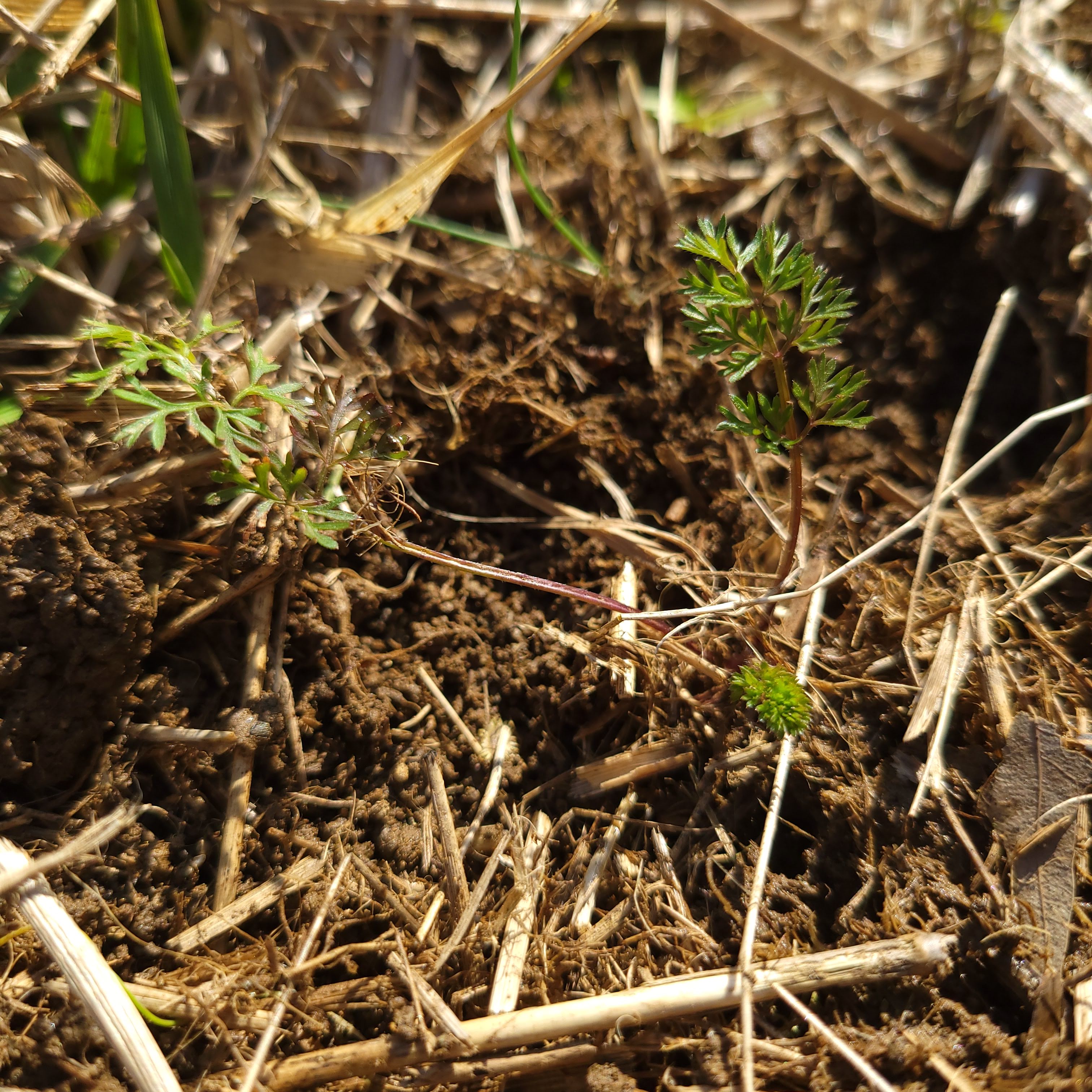 These little guys are small enough they are probably first-year seedlings rather than overwintered plants ready to send up a flowering stalk once the weather warms to summer. If the ground is warm enough for them, it will be warm enough in your garden beds as well – time to plant domesticated carrots as well!