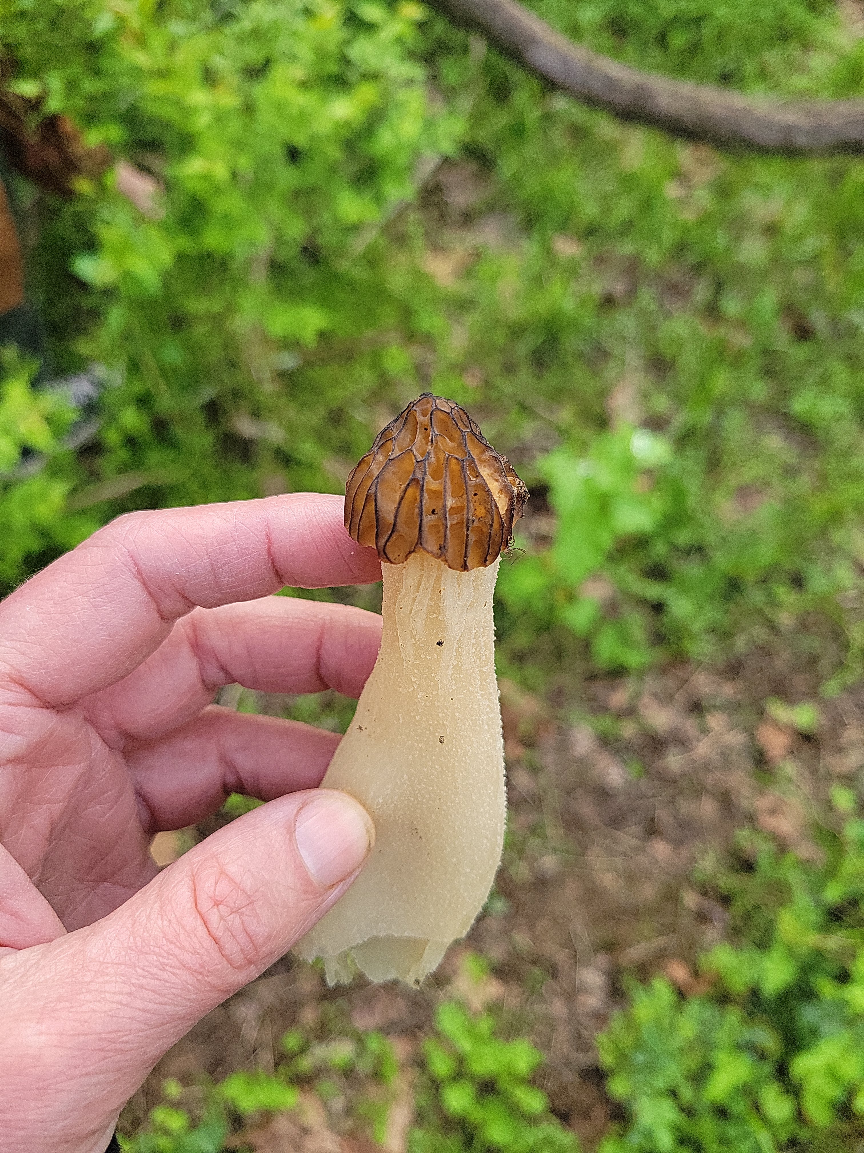 They are called half-free because the cap is only partially connected to the stalk. There’s, um, a lot of other slang names for the half-free, which I won’t get into here because this is a family-friendly blog! Some resources say the half-free morels aren’t quite as tasty as the yellow ones, but others point out that a morel is a morel – eat up!