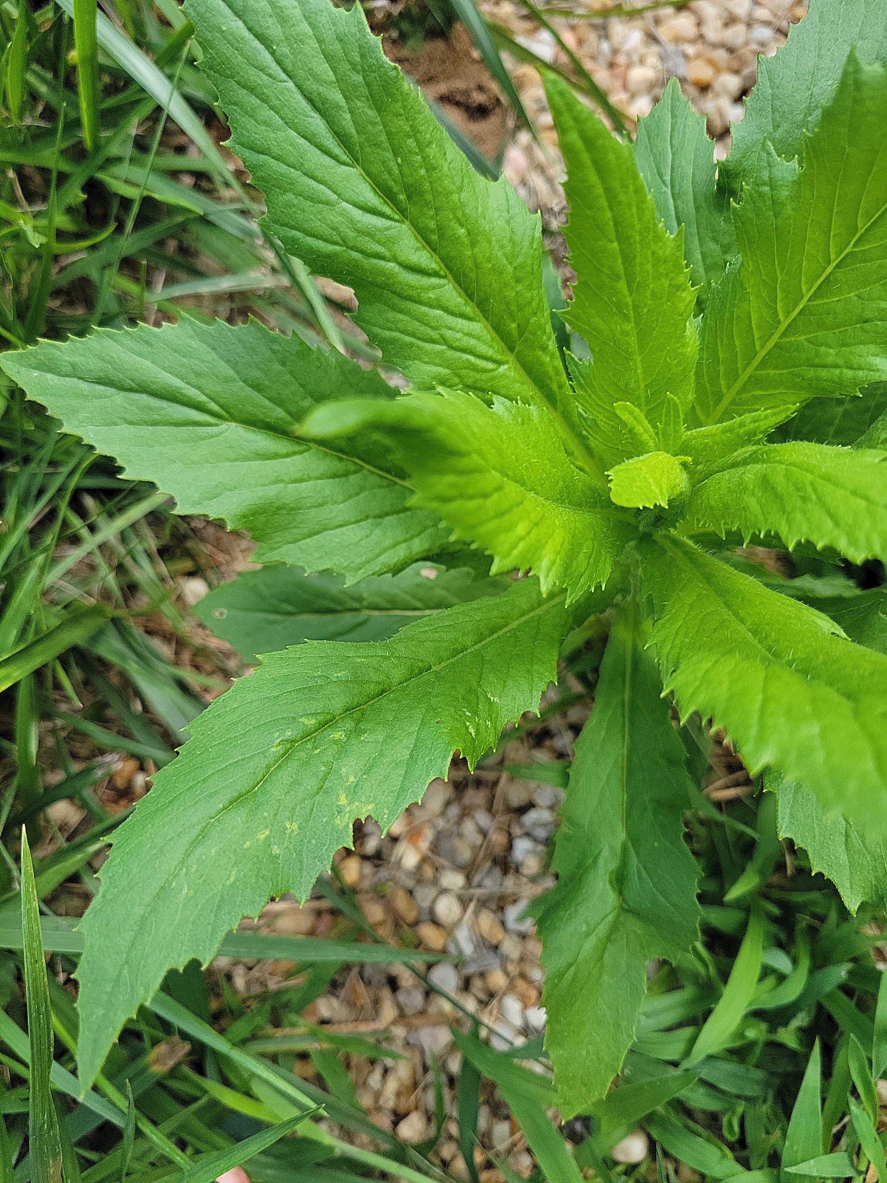 Take for example: American burnweed (Erechtites hieraciifolius). Also known as fireweed, but it shares that name with Chamaenerion angustifolium, which is not what we’re discussing this week. Burnweed is a native annual in the Aster family (with daisies, dandelions and lettuce), and sports some very showy leaves making it pretty easy to identify. As the name implies, it favors disturbed ground, especially where there has been fire.