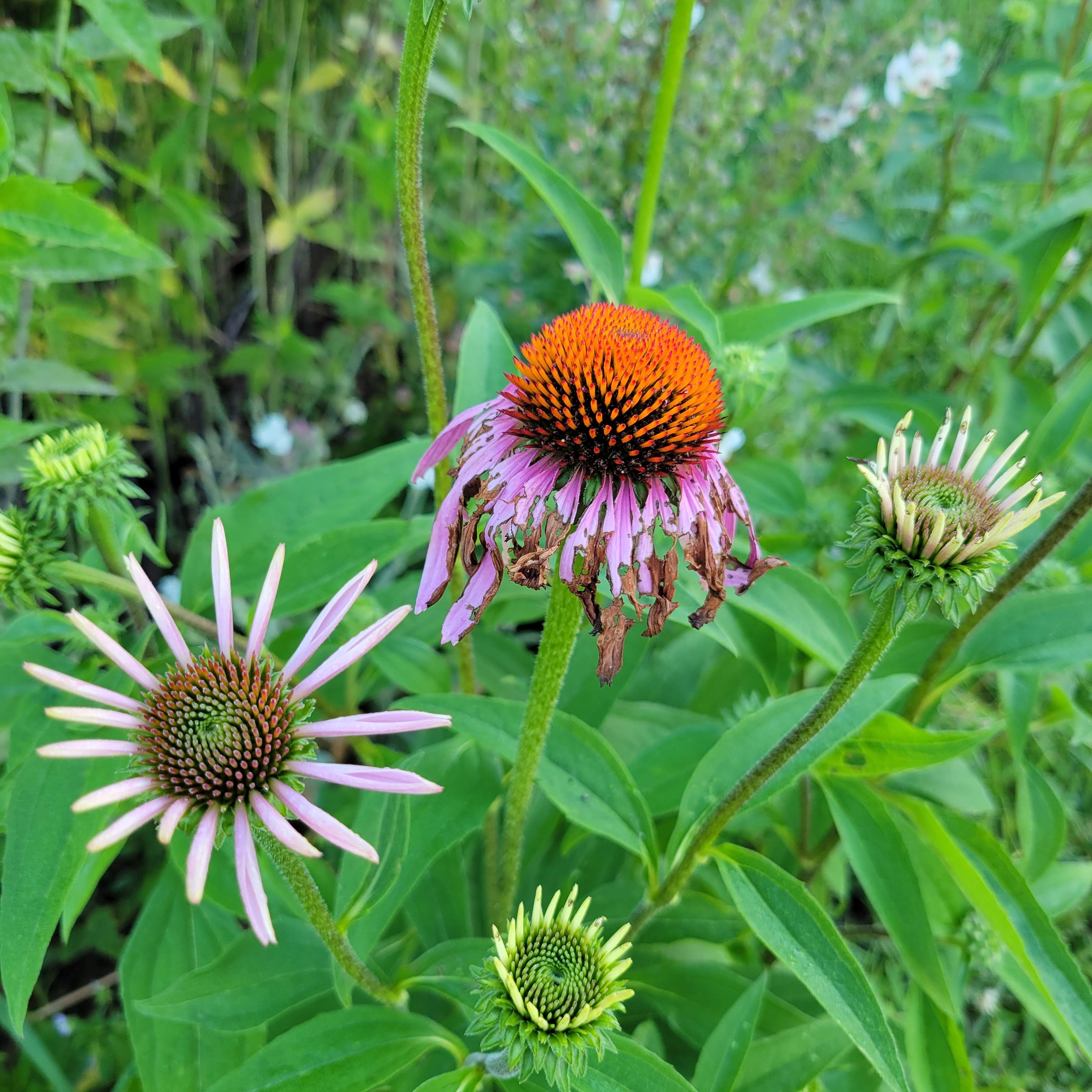 Echinacea / Purple Coneflower (Echinacea purpurea). 51 grams “aerial” parts (fancy plant speak for “anything above the ground”, i.e., exposed to the air.) Particularly helpful for spider bits and insect stings, and is a strong anti-inflammatory.