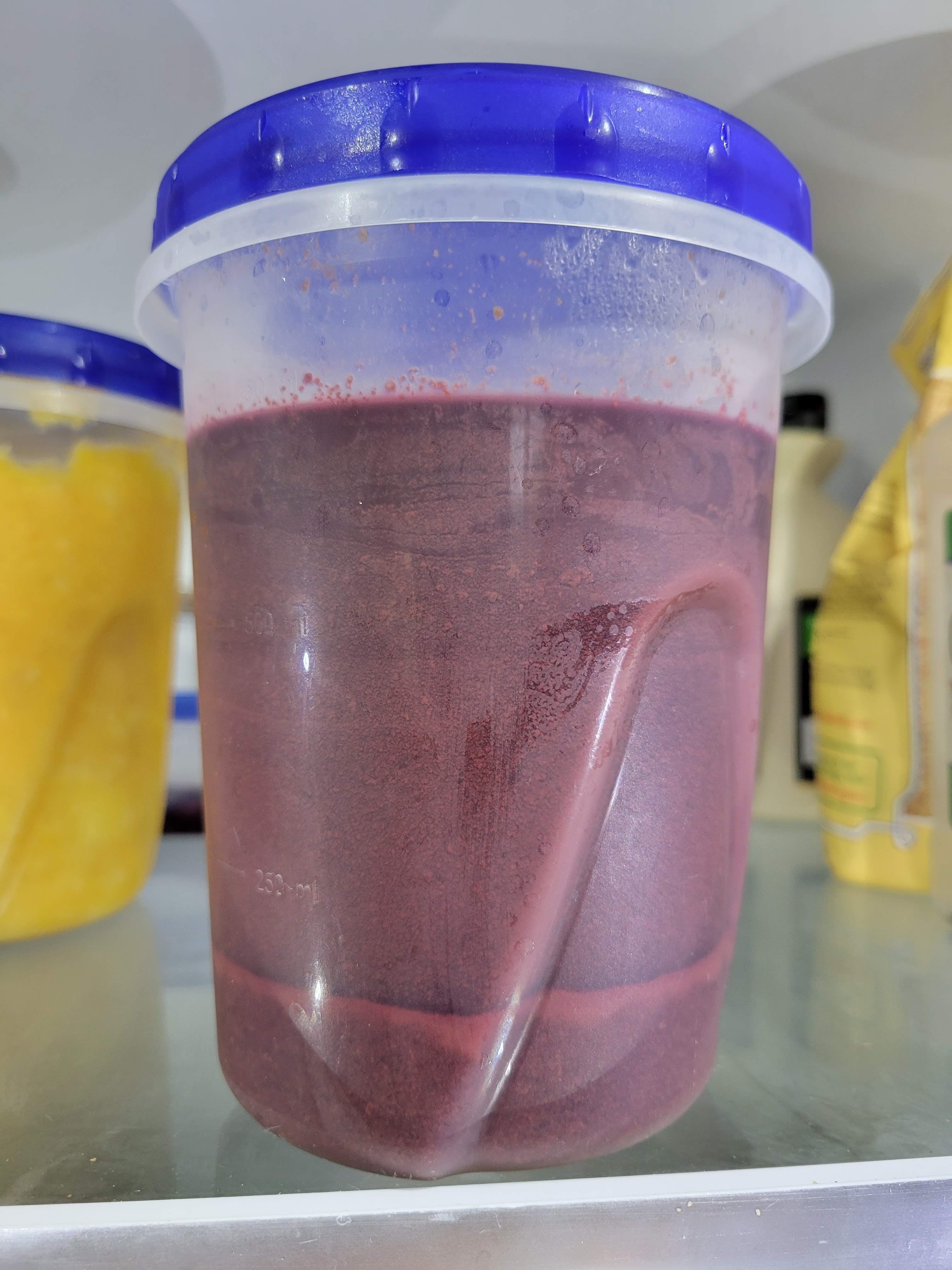The most important step of this whole process: the juice rested in the fridge overnight to allow the tartaric acid to settle out.