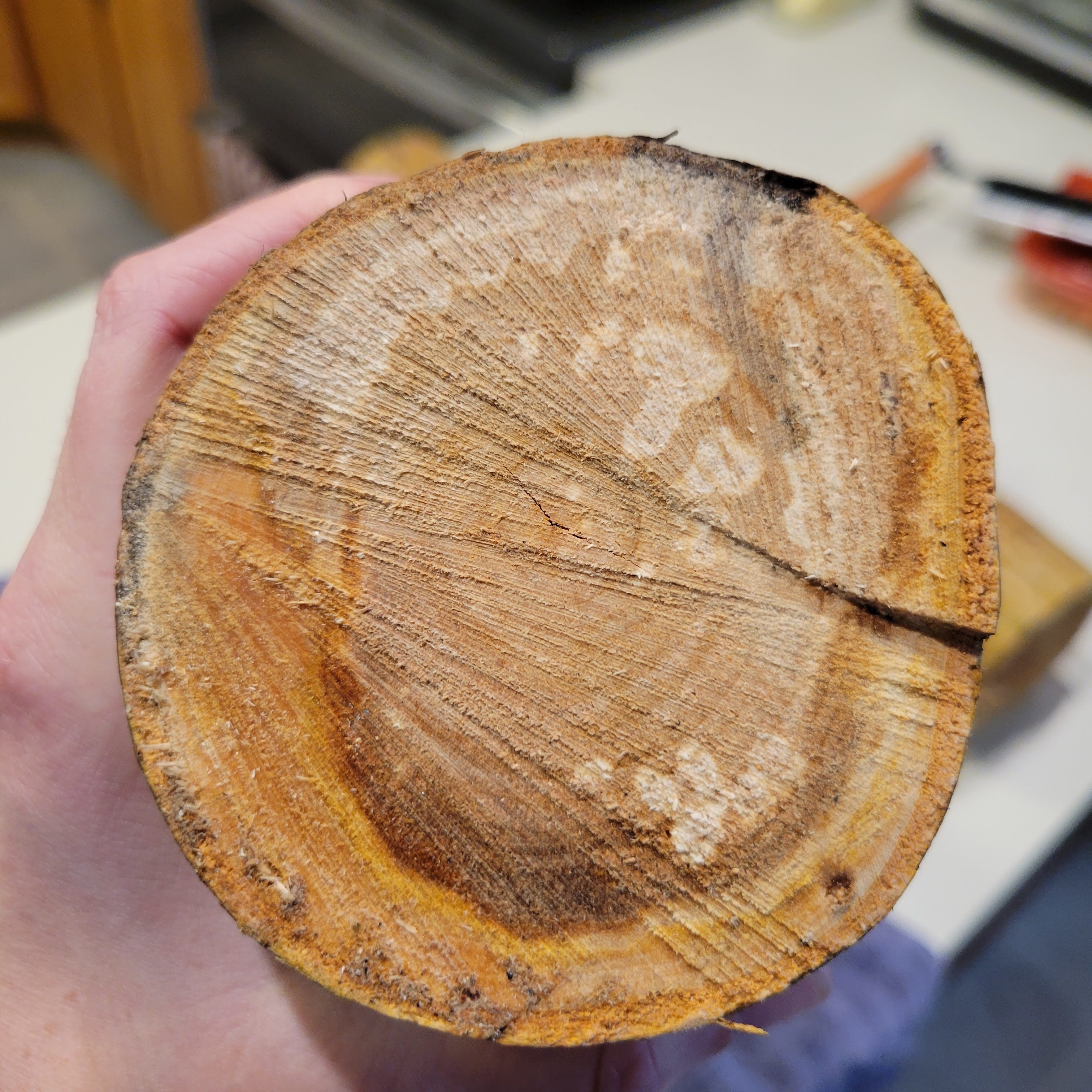 We harvested a few pieces of birch from a small, crooked tree that needed to be removed for the health of its neighbors. When you look at a cross section of the log, you can clearly see the separate layer of the inner bark.