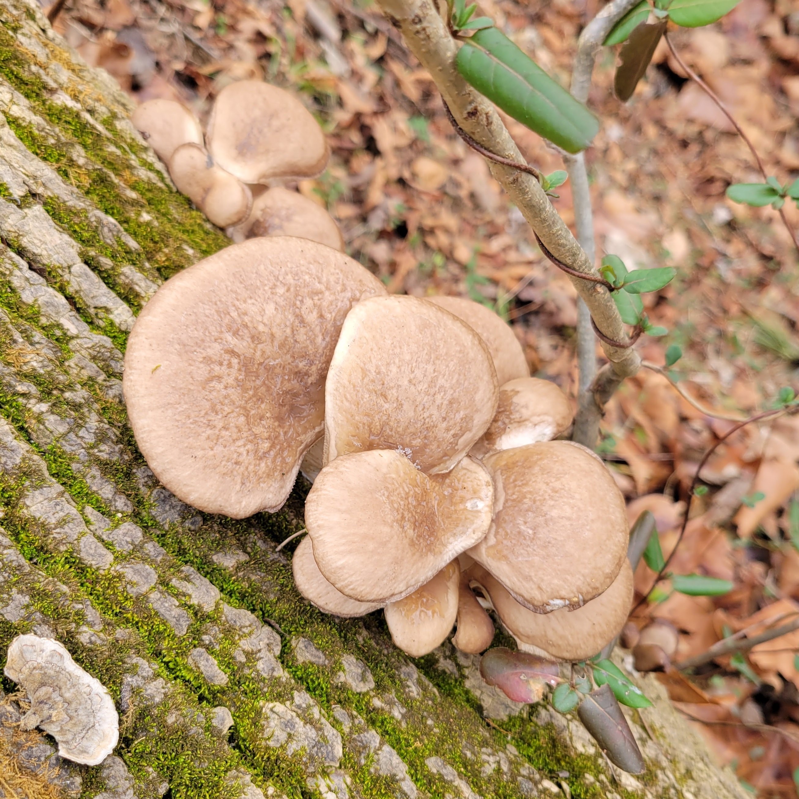 Instead, I got mushroomy goodness by way of oyster mushrooms (Pleurotus ostreatus), which do grow in the winter around here. Though they are a bit challenging to harvest when frozen all the way through!