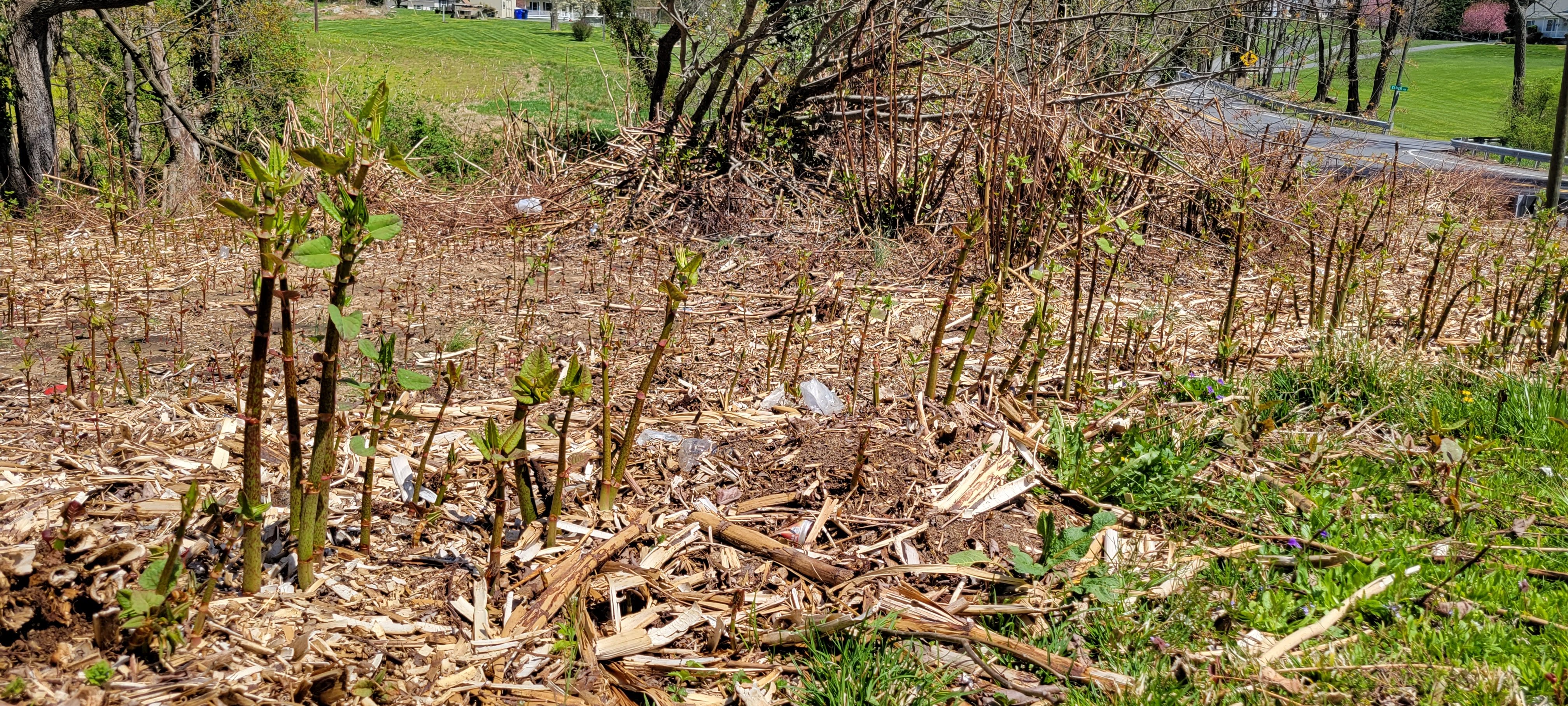 Obligatory warning: when foraging knotweed do not harvest shoots from any patch that appears to be treated with herbicides, such as glyphosates. In my particular case it looks like someone tried mowing to beat back the knotweed advance… how little they know!