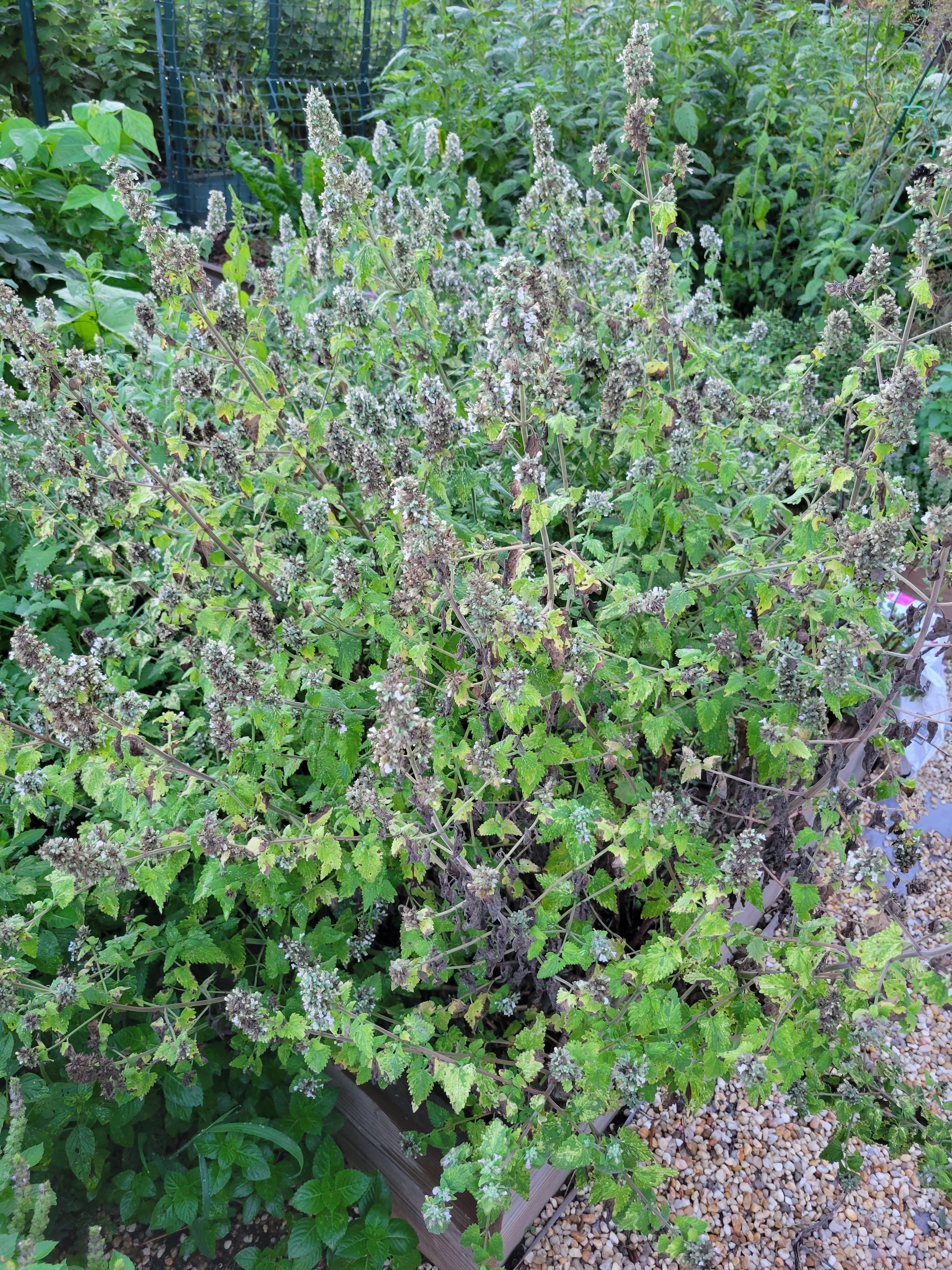 Below the herb wall, you can see my gooseberry bushes, and another lemon balm (yes, really).