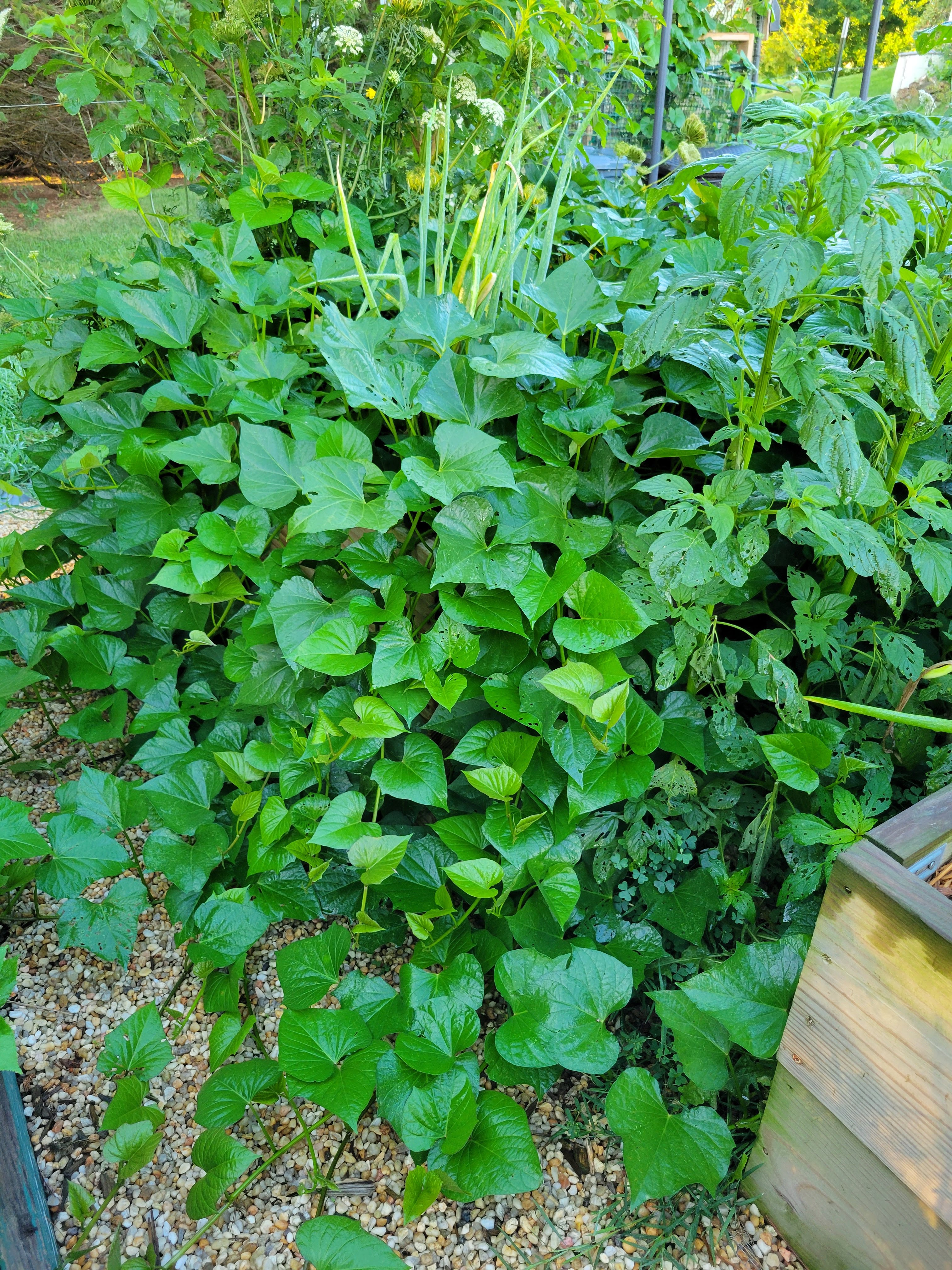 As you can see from the vines spilling out of the bed and across the paths, I need to eat more greens!