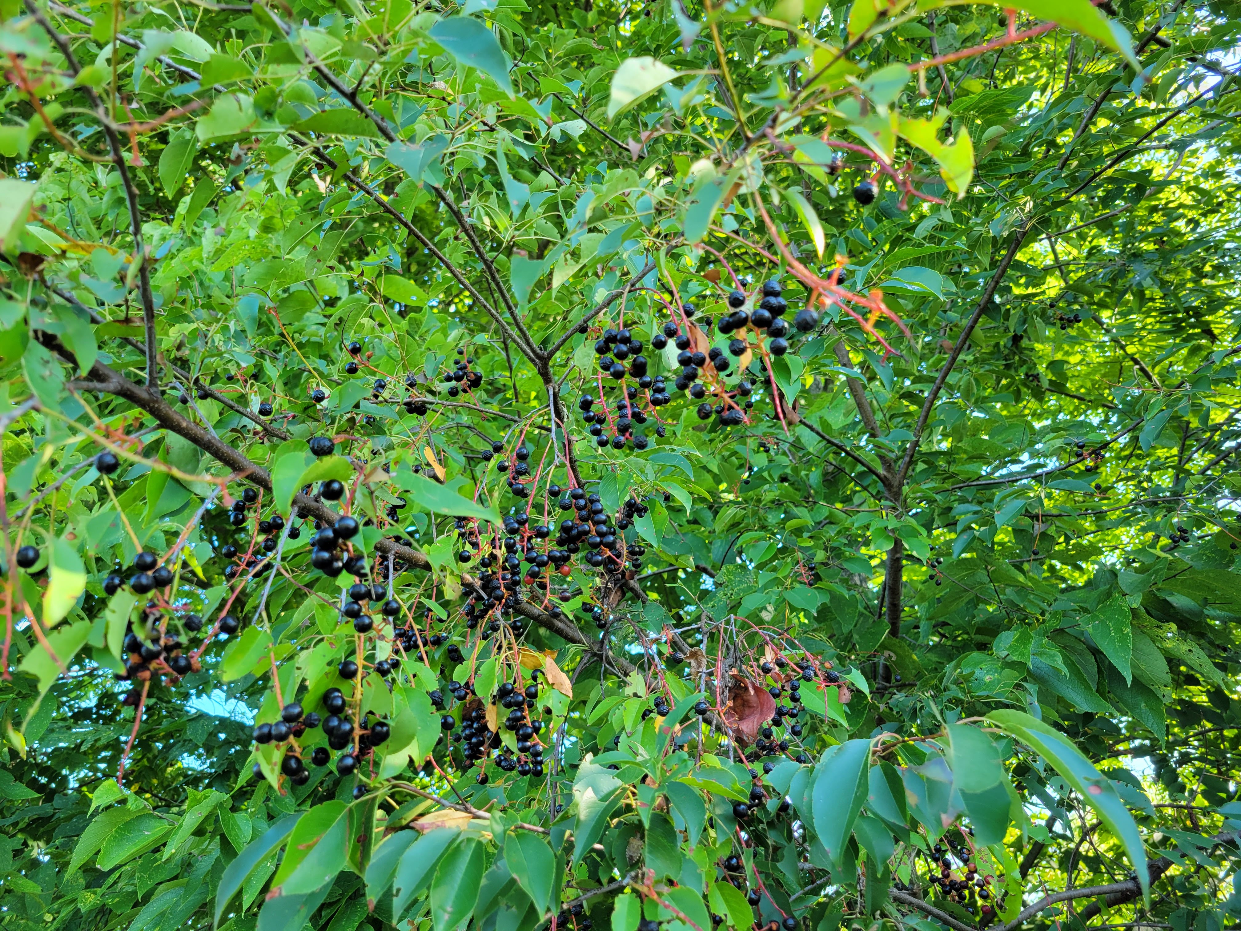 Somehow, the local black cherries trees still flaunt fruit. I briefly reconsidered my earlier decision to skip the black cherries this year. Luckily for everything else on my to-do list, I thought better of it! Although I have enjoyed a few black cherry mojitos in recent weeks.
